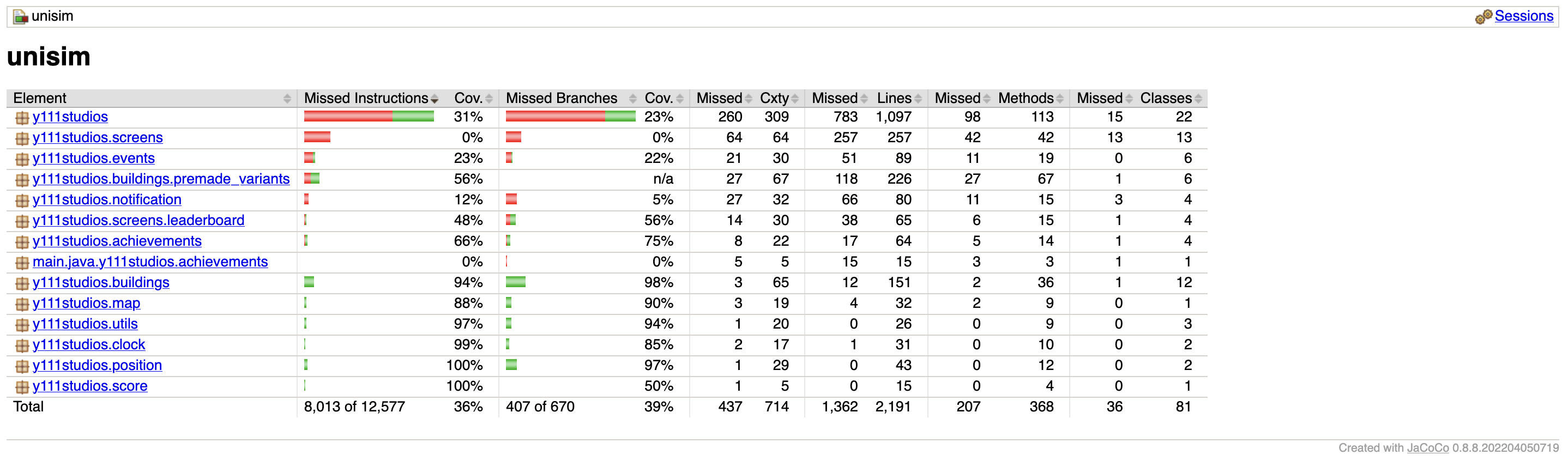 These reports are generated using JaCoCo, and show the overall test coverage through all execution paths.
